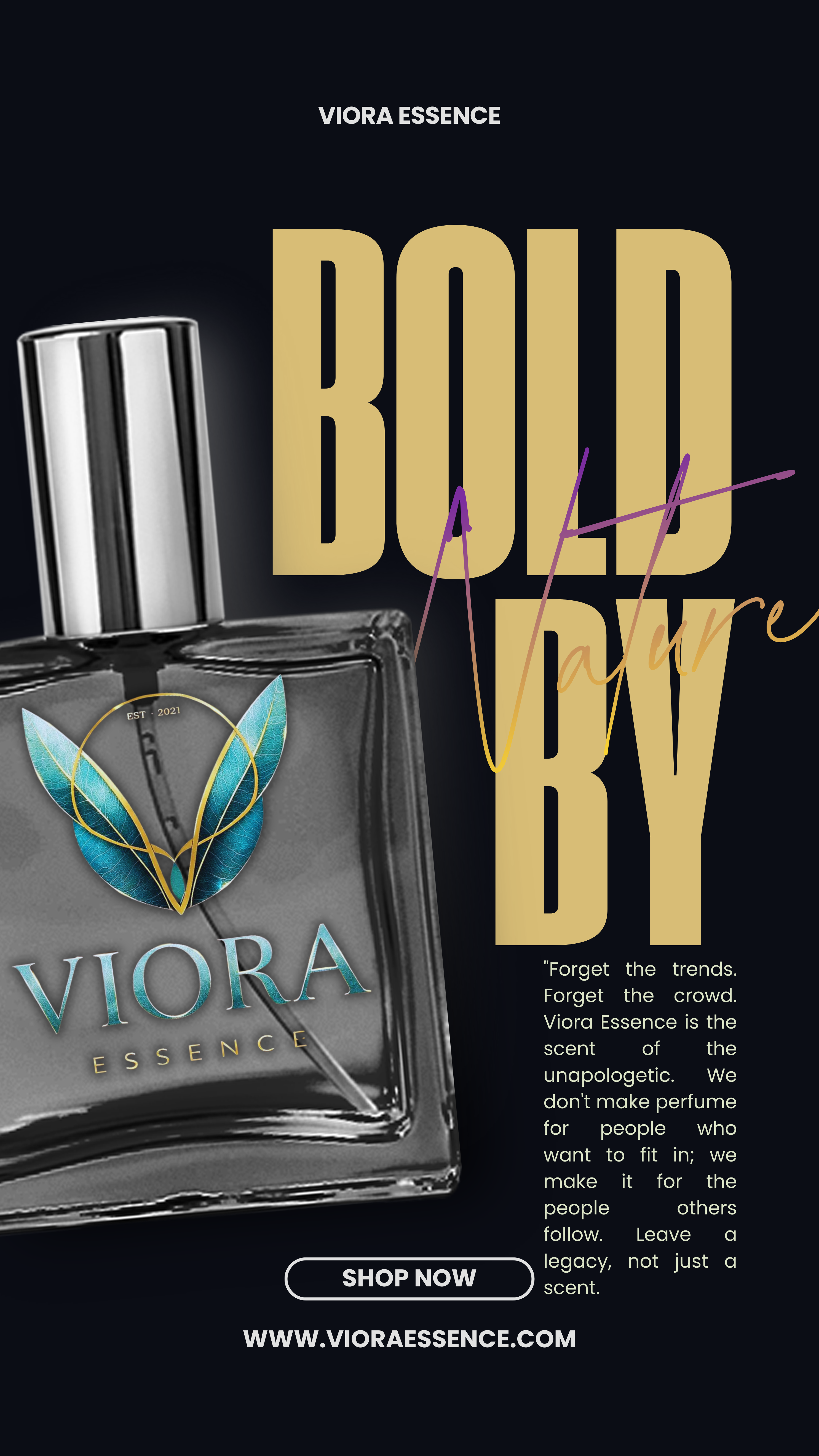 "Forget the trends. Forget the crowd. Viora Essence is the scent of the unapologetic. We don't make perfume for people who want to fit in; we make it for the people others follow. Leave a legacy, not just a scent.